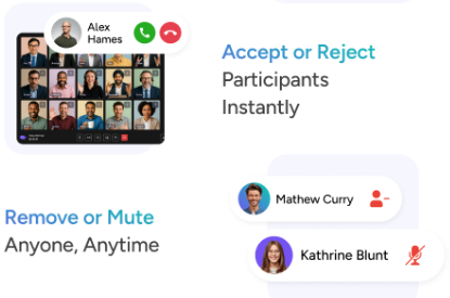 Full control of your meeting environment. You can approve or reject participant join requests, manage screen sharing.